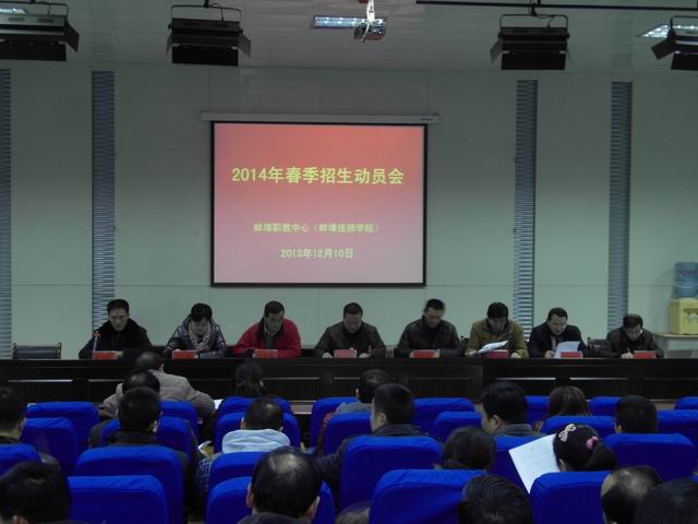 2014年12月10日,我校在学校多功能报告厅召开2014年春季招生工作动员会,学校领导班子成员、全体中层干部及部分教职工参加了动员会。