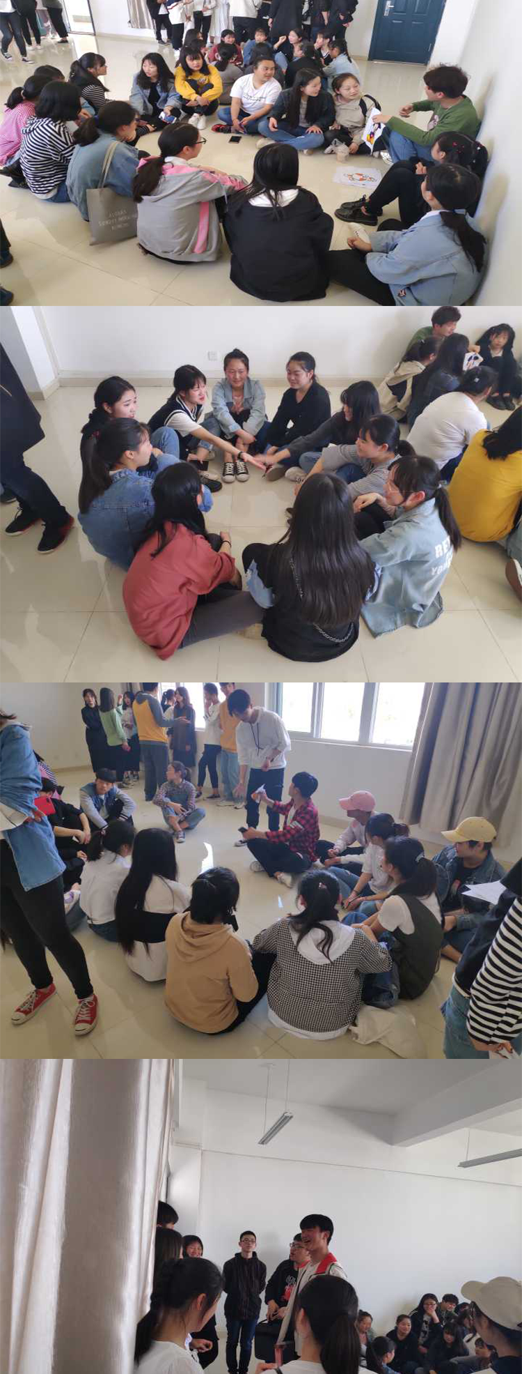 4月18日下午12:30微世界社团招开了首次社团活动,社员到齐以后就开始了活动。因为大家都是第一次见面,都不知道互相的名字,所以都自我介绍了一下。一轮介绍下来遍开始了玩游戏环节,一个社团分成了六个小组,期中有编辑组,剪辑组,表演组和摄影组,由于摄影组人气爆棚,所以又分俩个组,为摄影一组和摄影二组,由负责人带领他们开始游戏。表演组的游戏是萝卜蹲,游戏输了的人是有惩罚的,女生深蹲男生俯卧撑。几遍游戏下来大家都是大汗淋漓的。摄影一组的游戏是狼人杀,每个人都开始了智力斗争,输了的人要玩大冒险,很刺激。