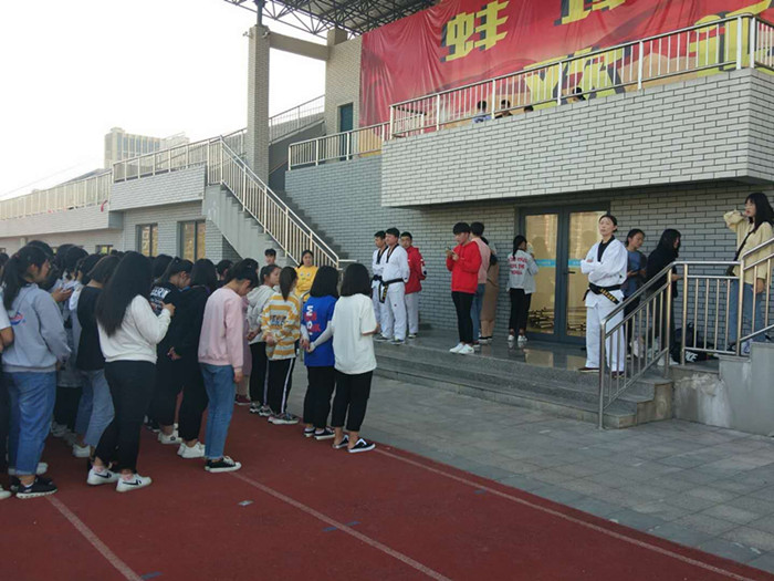 内容:2019年4月17日下午两节课后,我校跆拳道社团在校大操场开展了一个小时的训练与学习。