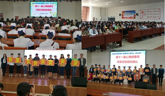 4月24日下午,我校“春风化雨润心田快乐健康伴我行”心理健康月闭幕式暨颁奖典礼在多功能厅举办,陈劲松副校长、史毓勇处长和部分师生参加了本次活动。陈劲松副校长在闭幕式上致辞,他肯定了心理健康活动月的成果及取得的成效,同时指出,心理健康月只是一个契机,提升心理健康水平,树立健康心理的理念是一个长期的过程,我们都要为此继续努力。他在讲话中表示,“身体发肤,受之父母,不敢毁伤”,爱护自己的心灵,保护自己的身体,让自己愉快健康的生活,就是对父母家人最大的孝心、最好的回报。随后,大会对在心理健康月主题征文比赛活动中获奖的学生和班级进行了表彰。