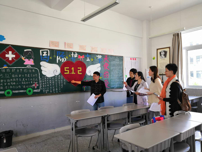 各班学生在班主任老师的带领下,精心选材、明确分工、高效高质的完成了任务。各班黑板报版面设计新颖,书写字迹工整,色彩搭配合理,传达了学生对护士职业性质的理解和对护士职业的敬意。