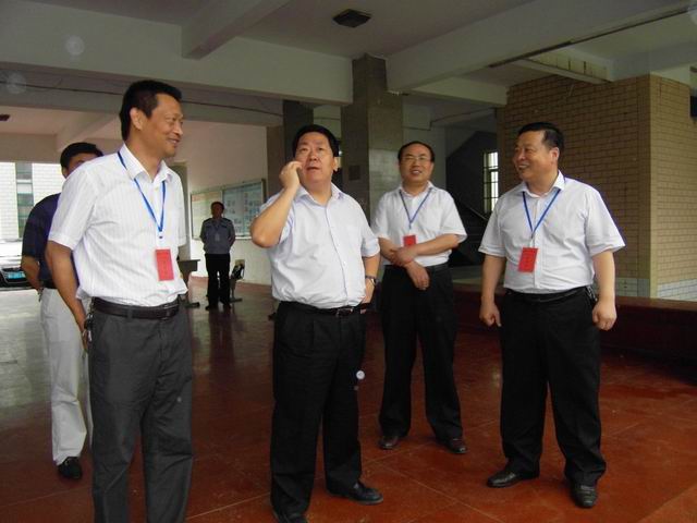 周勇部长(左二)与陈元高校长、胡业武书记亲切交谈