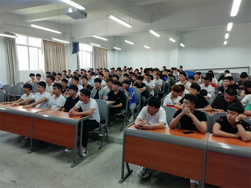 此次会议由我校“金牌蓝领”项目联系人田景新老师主持。机电工程系主任焦其彬、汽车实训中心主任方习贵,安徽柳工起重机有限公司人事专员唐磊、马继康,中航三鑫太阳能光电玻璃有限公司副经理王旭、招聘主管刘玲,机电工程系和机械工程系17级各班班主任及学生等150余人参加了此次会议。