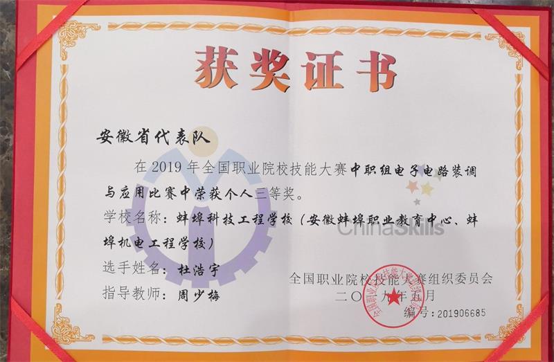 经过5月30日一整天紧张激烈的比赛,我校选手杜浩宇顽强拼搏,不畏强手,最终在大赛中获得国赛三等奖的好成绩。本次全国技能大赛,既展现了我校师生当前的专业技能水平,也通过横向比较反观了自身不足,今后,我校将进一步加强内涵建设,强化技能培训,实现学校在技能大赛上有更大的跨越!