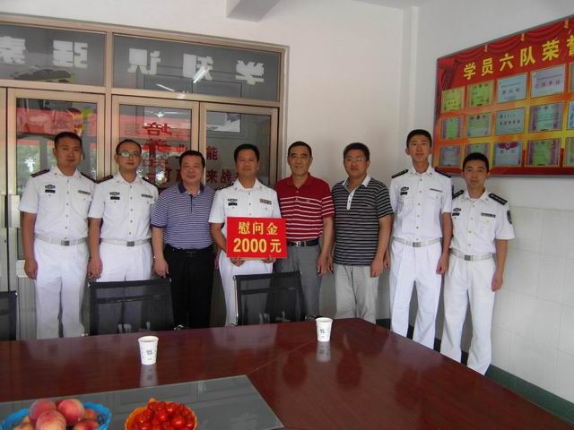 7月21日,在中国人民解放军建军86周年到来之际,校长陈元高、党委副书记马富强等前往海军蚌埠士官学校,走访慰问了学员六大队官兵,送上了慰问金,与他们畅叙双拥共建友情,祝他们“八一”建军节快乐!