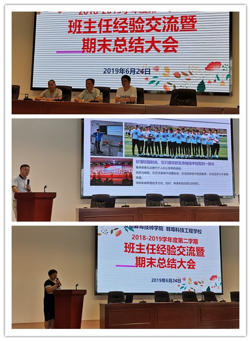 2019年6月24日上午,校学生处组织召开了2018-2019学年度第二学期班主任经验交流暨学期总结大会。校分管德育的陈劲松副校长、学生处郭仁龙处长、全体班主任参加了会议,会议由徐何刚副处长主持。