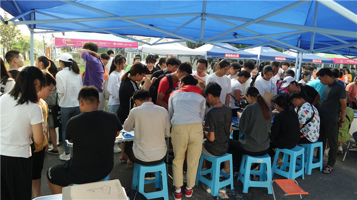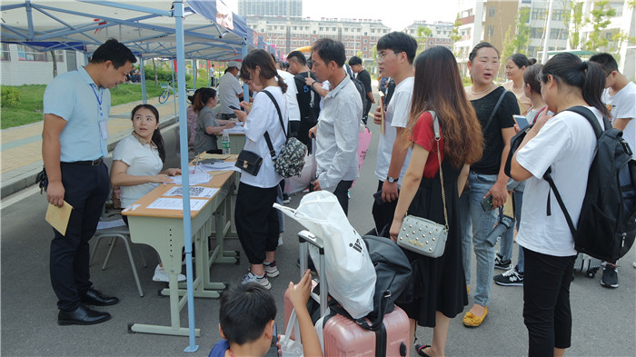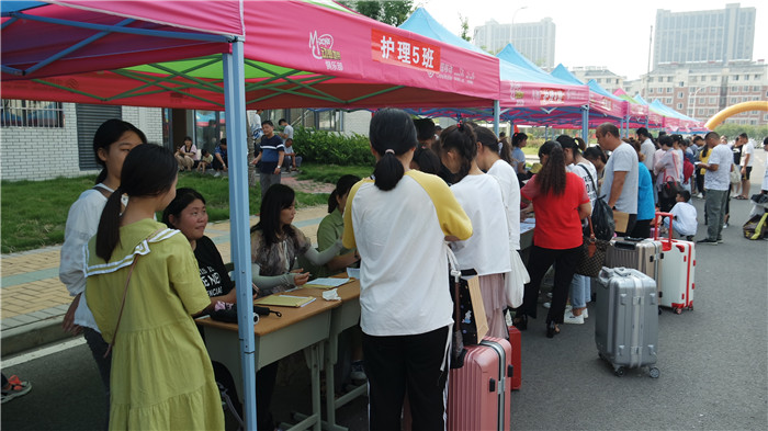 早上7点,很多家长就带着孩子就早早来到学校,他们在迎新老师和学生志愿者的引导下,有序进行报到。上午8时,新生报到进入高峰,整个校园车水马龙、人流如织,各个专业报名点排起长长队伍,报名现场异常火爆,盛况空前。至下午4点,已有1400名新生报到注册。