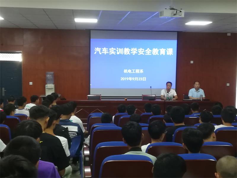 为切实加强学生实训教学安全管理工作,进一步提高全体师生的安全意识和自我防护能力,保证学生实训教学工作安全有序进行,9月23日下午3:45分,我校机电工程系组织17级、18级汽修专业全体学生在教学西楼107室开展了一场“汽车实训教学安全教育课”活动。