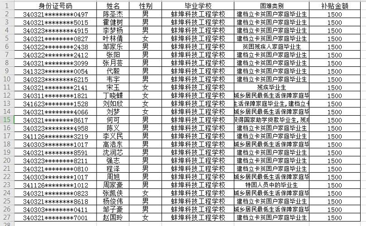 2020届中职家庭困难毕业生求职创业补贴校验通过结果公示