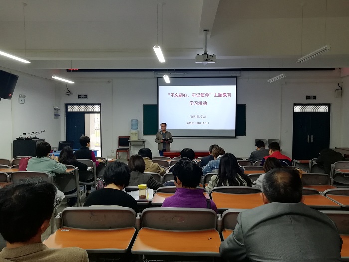 10月16日下午二节课后,四支部组织党员在教学楼南楼西107阶梯教室开展“不忘初心,牢记使命”主题教育学习活动。