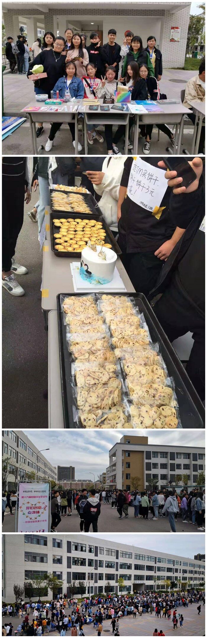 此次跳蚤市场气氛火爆,共设56个摊位,分别由学校的18、19级各班级组成。各类商品应有尽有,其中有学生们亲手制作的蛋糕、西点、手链、编制的手袋,还有部分二手商品摊位也是新奇独特。在这里同学们将自己用不到的东西转让。女生们将自己多余的头饰、包包、玩偶等摆出来,男生将自己的足球、皮带、手办等拿到跳蚤市场转让。还有同学出售各种书籍,分享知识分享快乐。历来都以物美价廉而闻名的“跳蚤市场”,自然吸引了不少学生。勾起不少学生的购买欲望,纷纷驻足细选,活动开始不久后,已有不少同学加入了选购商品的行列,现场人山人海,热闹非凡。