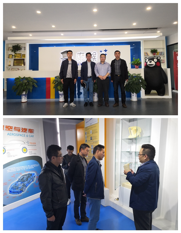 双方首先进行了座谈。杨经理向大家介绍了安徽魔猴三维科技有限责任公司的基本情况,公司以3D打印和3D数据处理技术为基础,提供从3D扫描、设计建模、云3D打印到后处理上色、物品快递,从高级定制到批量生产等一站式整套3D打印服务,能让模具制作环节更加便捷。消费者提出需求后,魔猴可以通过魔猴平台资源库以及专业设计师实现有效对接,并通过魔猴自身的硬件优势快速将创意和想法变为实现。