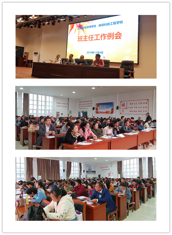 2019年11月4日下午三节课后,我校学生处在报告厅召开了十一月份班主任工作例会。全体班主任和相关领导参加了会议,会议由徐何刚副处长主持。