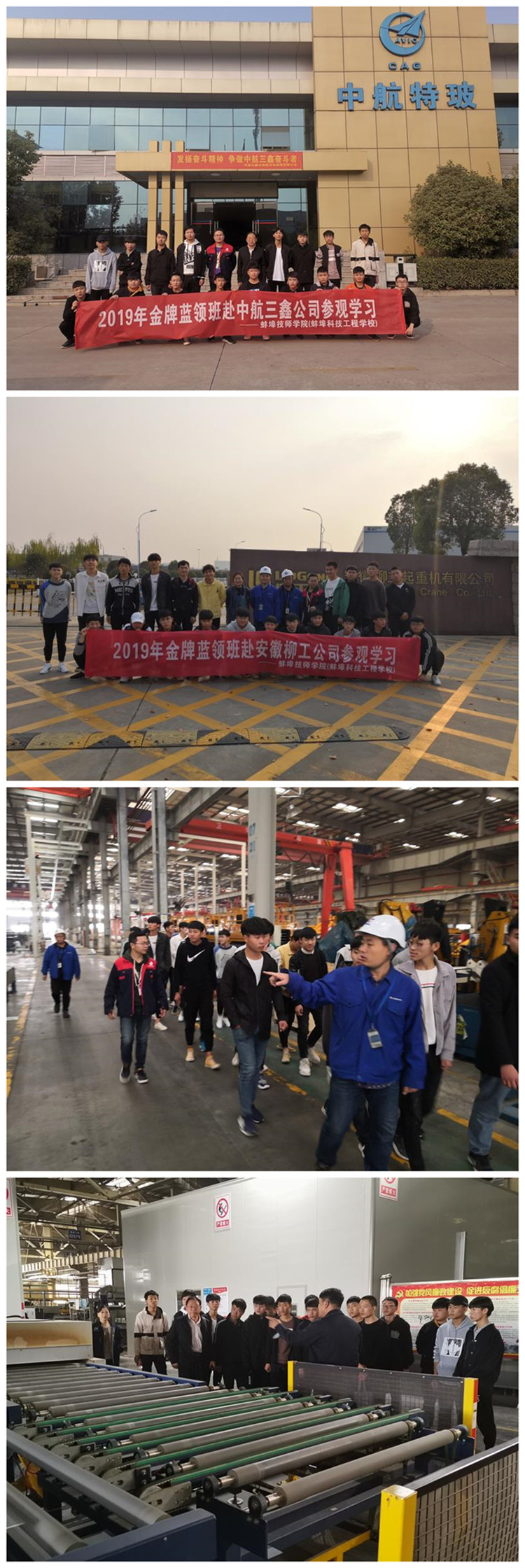 下午2点,由余翔、闻凤阳两位老师带队的学员顺利抵达安徽柳工起重机有限公司,人事部唐磊部长带多名人事专员热情接待,公司先给所有学员上了一堂生动的安全教育课,然后大家列队参观工厂,多部门的主要负责人在生产线做了详细的讲解,学生按照参观路线观摩学习,也有多位前期金牌蓝领学员在工位正常上班,操作设备等,学生受到了极大感染。车间出来后,大家蛮有兴致的参观了培训中心,看到了很多新设备新工具。唐部长也做了实习工作岗位、福利等相关的解释。