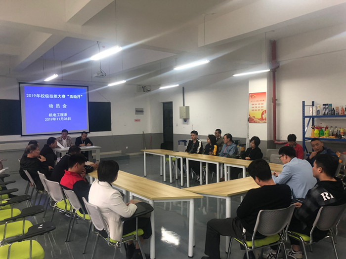 11月6日下午3:45分,我校机电工程系在汽车实训基地南108室召开了2019年校级技能大赛“活动月”动员会,会议由系主任焦其彬主持,全系教师参加了此次会议。