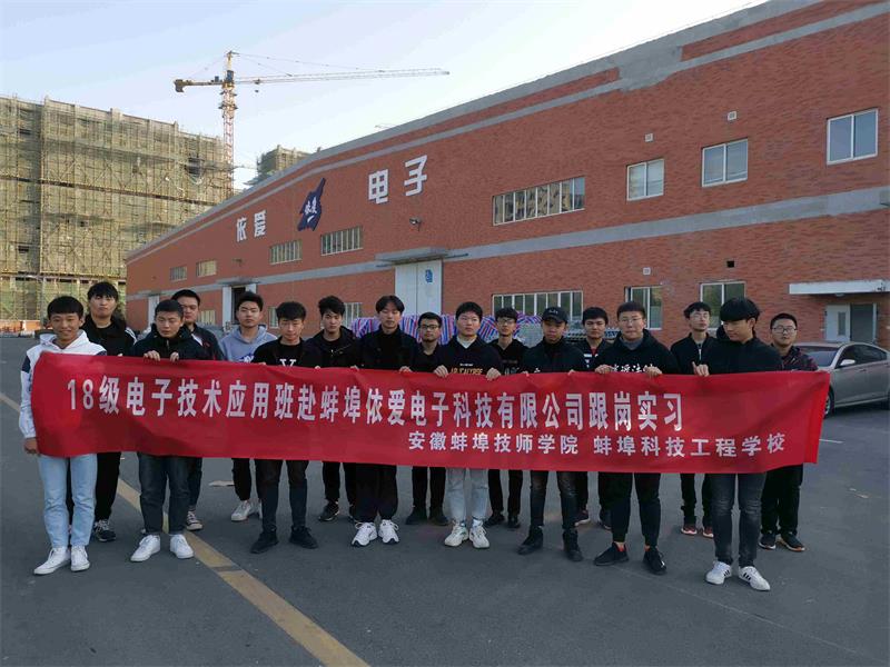 在我校招生就业办的牵头主导下,机电工程系2018级电子技术应用班全班于2019年11月18日赴蚌埠依爱电子科技有限公司跟岗实习一个月。