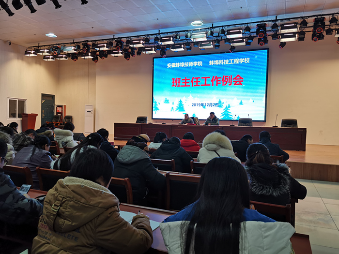 接着郭仁龙处长就十一月份的班级工作进行了梳理,对班主任们在家长会和校园开放日两项重大活动中的辛勤付出表示感谢。有个别班主任在召开家长会时出现了准备工作不充分、不细致情况,要认真总结反思。接下来郭处长对十二月份工作进行了布署,1、传达学校招生就业办公室关于17级学生顶岗实习离校注意事项,解读了蚌埠市政府对本地实习就业安排奖励政策。2、对近期由市教育局举办的首届中等职业学校班主任能力素质大赛进行总结,希望参赛选手找到差距,及时反思,激发不断学习、不断提高的工作热情,进一步提升班主任的业务能力和水平。3、公布11月各班级的请假情况。自从11月实施新的请假制度以来,大多班级请假人次明显减少,有十三个班级达到了整月零请假。 随着天气变冷,学生请假现象可能增多,希望各班进一步落实请假制度,规范管理,加强我校的学风建设。4、强化安全意识。学期临近尾声,工作不能懈怠,各班要加强学生冬季用电防火、交通、用餐卫生等安全教育工作,做实日常安全教育和管理工作,切实杜绝安全隐患,积极防范各类校园事故的发生,做到学生利益至上,安全常记心中。