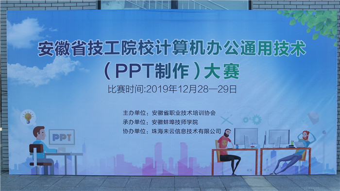 为检验全省技工院校计算机办公通用技术教学改革成果,展示技工院校师生信息化技术素养,促进技工院校师生计算机办公通用技术质量进一步提升,同时选拔优秀学生参加2020年第十六届MOS中国区大赛PPT项目比赛。2019年12月28日上午,第一届安徽省技工院校计算机通用技术(PPT制作)大赛决赛在我校鸣金开赛。比赛分教师组和学生组两组进行,经过初赛,最后确定24组学生和36名教师晋级决赛。届时,大赛组委会委员、省职业技术培训协会执行秘书长赵建平亲临比赛现场,对整个比赛进行全程督导。