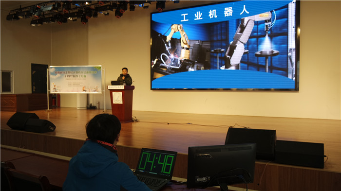 本次比赛过程分为初赛(提交作品)和决赛(现场比赛)两个阶段。按规定12月18日完成初赛。今天进行是决赛阶段,教师组于上午8时整在学院信息楼多功能厅开赛,学生组于上午9时在实训楼两个机房同时进行。教师组决赛要求教师在10分钟内展示PPT课件,配合课件完成主题演讲,评委进行现场打分;学生组决赛阶段内容包括PPT动画演示文稿现场制作及主题演讲。比赛中,选手们精神饱满,斗志昂扬。竞赛场面紧张激烈,精彩纷呈,展现出了技工院校师生良好的素质和扎实的基本功,也展示了青年教师的课堂教学风采和青春学子专业技能水平。