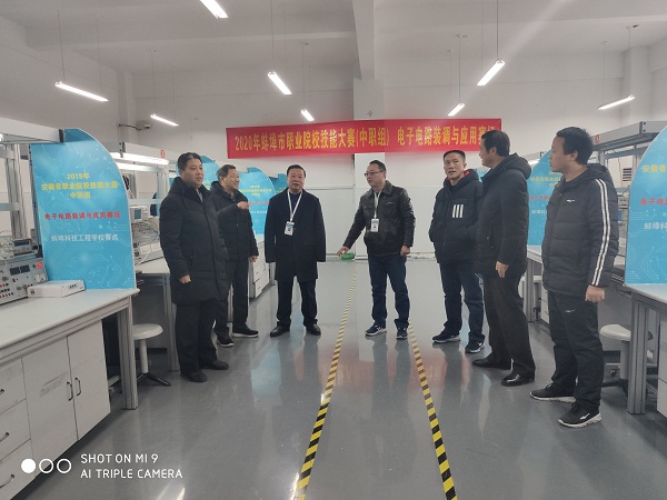 2020年1月3日上午,校领导对在我校举办的2020年蚌埠市职业院校(中职组)技能大赛场地展开实地巡查。后勤部门、承担赛项系部、教务处、教科研处有关人员陪同。