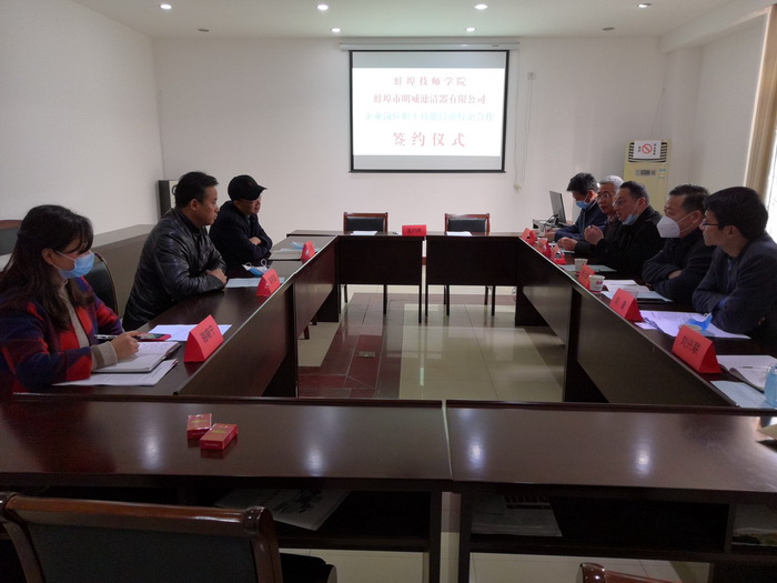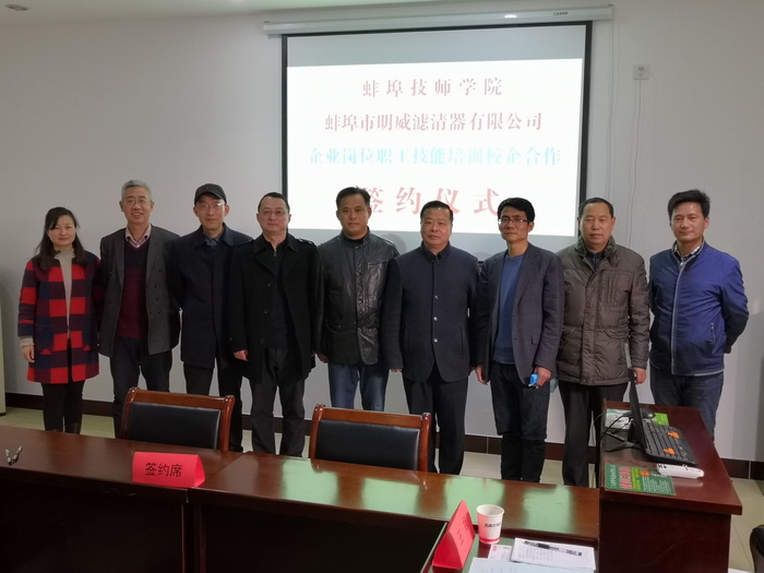 当前,疫情防控形势持续向好,企业复工复产不断推进。作为全市技工教育和职业培训的主体和骨干力量,蚌埠技师学院助力企业职工技能培训工作也在不断推进。4月3日下午,学院与蚌埠明威滤清器有限公司校企职业技能培训合作签约仪式在公司会议室举行,院党委书记陈元高、院长宋晓宾,公司董事长陈明志、总经理王年胜等领导出席仪式,市人社局职业能力建设科科长刘康到会祝贺。这是疫情期间,学院统筹推进疫情防控和校企合作职业技能培训结出的又一硕果。