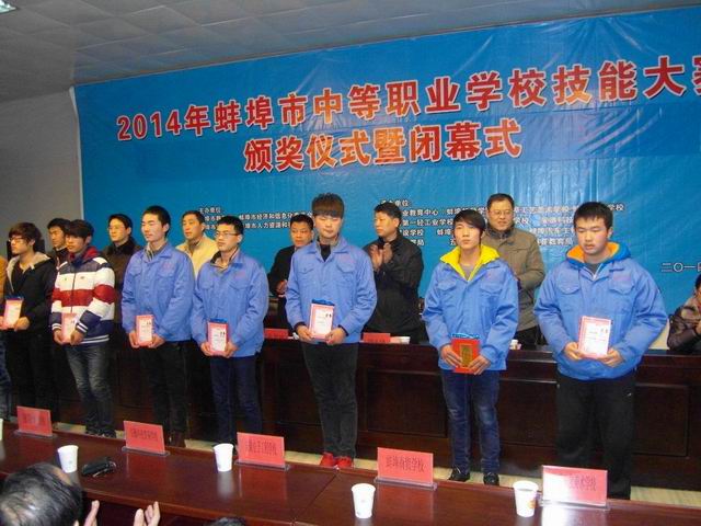 在日前结束的2014年蚌埠市中等职业学校技能大赛上,我校在团体和个人奖项的等次和数量上均获得第一,继续在全市保持领先。同时,学校获得优秀组织奖。具体成绩如下: