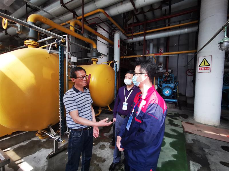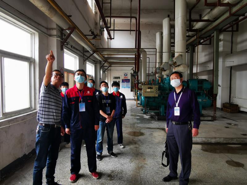 蚌埠市宏业集团冷藏速冻食品厂分管生产的王继山副厂长热情接待我校一行人员。首先,王继山副厂长为大家介绍了蚌埠宏业集团的发展改制历程,现经营现状及发展愿景。随后引导大家实地传给你厂区冷库,在冷库控制室详细介绍了氨制冷系统的组成、工作原理、运行与维护及生产安全保障。参观中,第46届世界技能大赛制冷与空调项目安徽省集训队技术指导专家组组长贾长林与王继山副厂长进行深入交流、研讨,贾长林组长认为竞赛实训设备及普通家用制冷系统与大型商用冷库的制冷系统有联系、有区别,基本原理一致,设备维护和安全保障措施值得在日常训练中借鉴,并要进一步加强培训。