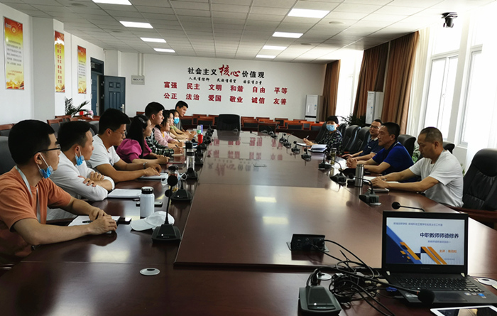 接下来陈劲松副院长以“中职教师师德修养”为主题,为新教师带来了精彩的培训课。他从班主任的由来,班主任素质要求和班主任工作主要内容三个方面进行了深入浅出的阐述。幽默风趣的语言、从容自信的娓娓道来,一个个生动鲜活的案例,都给老师们留下了深刻印象,让老师们明白了作为教师应有的行为礼仪规范,为更好地适应角色转换奠定了良好的基础。老师们仔细聆听,认真做笔记。教旅之途,师德修养至关重要,经过今天的主题学习,老师们受益良多。