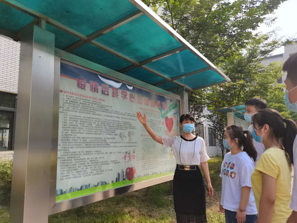 习近平总书记强调:及时加强心理干预和疏导,有针对性地做好人文关怀,是打赢这场疫情防控阻击战的重要一环。5月26日下午,我校利用宣传栏这一阵地,向学生普及心理健康知识,以“情绪管理”、“危机干预”、“教师助学”、“人际交往”等为主题进行心理健康教育的宣传活动,向学生宣传疫情之后如何进行心理调适,提高突发事件应对能力,分享一些有助于快速适应学校生活的方法,引导学生积极面对学习生活,学会识别和处理不良情绪,帮助师生调整适应新情况、新问题,笑对人生。