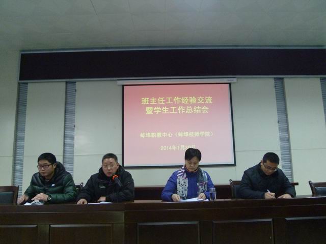 1月20日上午9:00,我校学生处组织召开2013~2014学年度第一学期班主任经验交流暨学生工作总结大会,会议由学生处长谢铭同志主持,学校各部门负责人列席,学校领导张玉琳副校长出席会议并讲话。