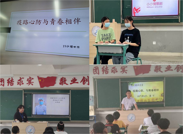 6月8日下午,我校举办了以“疫路心防 与青春相伴”的心理健康教育主题班会。本学期由于长期的居家学习以及线上线下的教学转换,学生会出现一定的心理问题,因此改善复学后学生心理健康状况,提升学生的疫后心理康复能力,帮助他们克服心理困难,显得尤为迫切。据此,我校特在全校开展主题班会活动。活动由学生处主办,各班级班主任具体承办。校领导非常重视此次主题班会活动,中层以上干部下沉到各个班级听课。各班充分准备,利用课件、视频等多种辅助形式,让学生更直观的了解相关知识,引导学生形成正向积极的心理,传播正能量。学生们积极参与,通过演讲、朗诵、唱歌、舞蹈、情景剧等形式,宣传了心理健康知识,传递了同学间的友情,增强了班级的凝聚力。