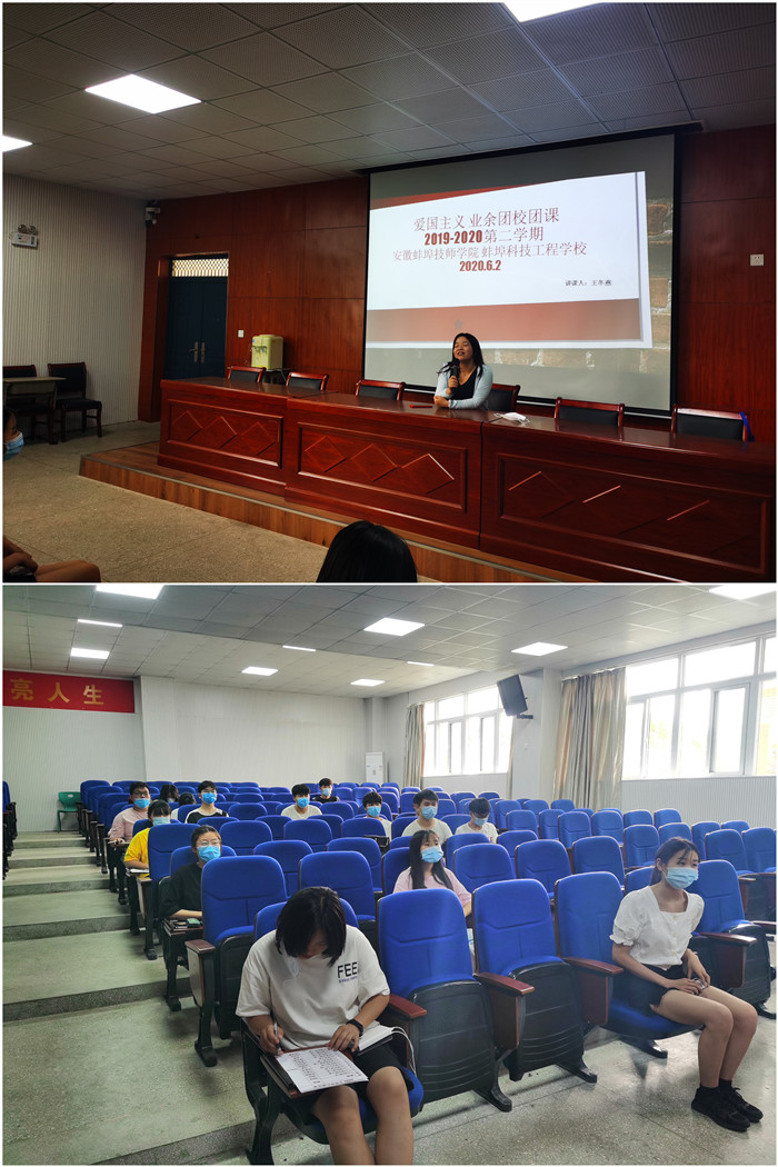 我院于2020年6月2号下午四点在101阶梯教室进行了中学生团校团课第一讲,讲课老师是王冬燕老师,面向2020年新入团员,团课以主题为爱国,讲述爱国是一个公民最基本的道德,也是中华民族的优良传统。