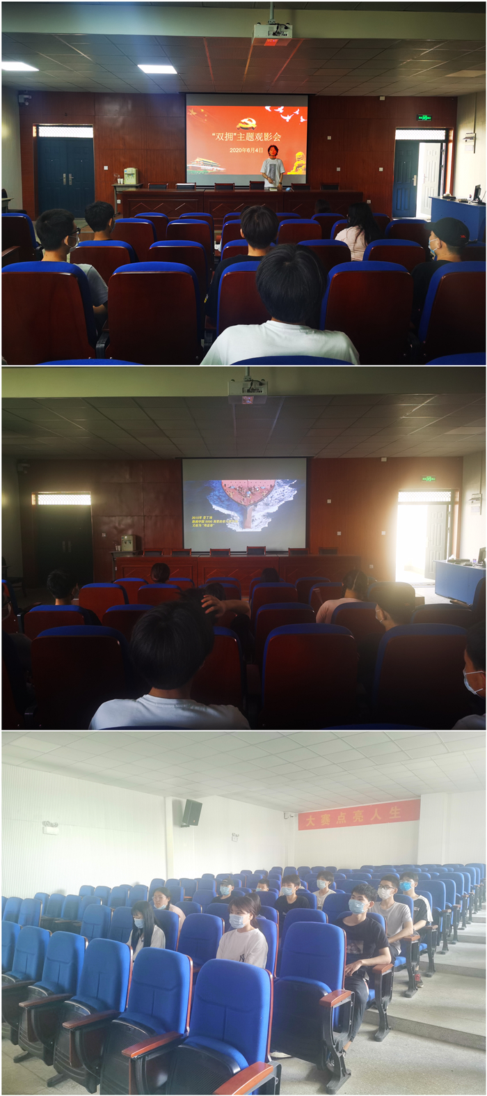 为提高学生对双拥的认知,巩固和加强军政军民团结。2020年6月4日,我院团委组织部分学生代表开展双拥主题《智取威虎山》观影会,本次活动的主讲人是葛蕊老师,电影内容感人至深,给同学们留下了深刻的印象。