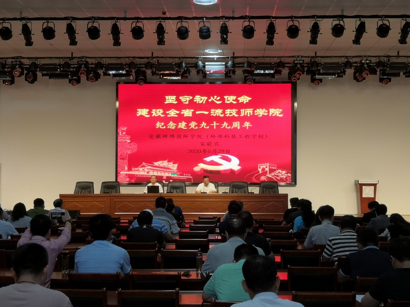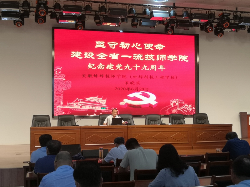 6月29日上午,在中国共产党第99个生日来临之际,安徽蚌埠技师学院(蚌埠科技工程学校)隆重举行庆祝建党99周年党课报告会。院党委书记陈元高主持党课报告会。