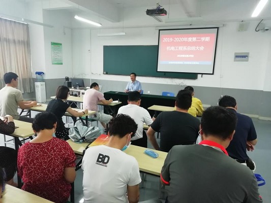 6月29日上午,机电工程系2019—2020年度第二学期期末总结大会在学院汽车实训基地南110室召开,会议由机电工程系主任焦其彬主持,全系教职工参加本次会议。