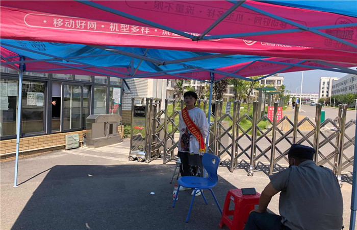 志愿者们活跃在迎接新生的一线岗位,他们在校门口为刚入校有些迷糊的学生引路;他们在招生办,为新生办理录入工作;他们在报到处,带领新生做好开学前的报道工作;他们在宿舍楼,为学弟学妹们指引宿舍,搬运行李;烈日灼人,但是志愿者们没有一丝退意,他们一直在坚守,他们一直在奉献。