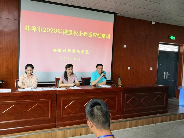 近日,2020年蚌埠市退役军人适应性培训圆满结束,本次培训共六天分两个批次进行,参加培训退役军人来自蚌埠市各个区,共136人参加(其中第一批77人、第二批59人),培训工作由蚌埠市退役军人事务局、蚌埠市军培中心、蚌埠技师学院共同协作完成。