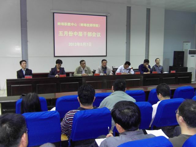 5月7日下午,我校召开了五月份中层干部会议,校领导班子成员出席。陈元高校长总结了四月份工作,并部署了五月份重点工作。胡业武书记主持会议,并就党建、工会等工作进行了部署。