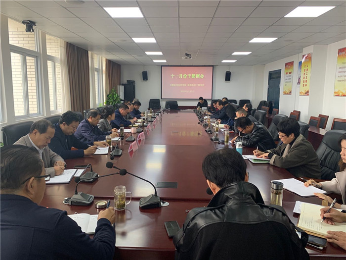 11月5日上午,宋晓宾院长主持召开2020年11月份干部例会,部署月度和阶段性重点工作任务。各部门负责人依次汇报了10月份主要工作完成情况和11月份工作打算。之后,院领导对各自分管领域的重点工作进行了部署,宋院长对各部门工作进行了全面部署,陈元高书记传达学习了习近平总书记关于平安中国建设工作的重要指示和平安中国建设工作会议精神。
