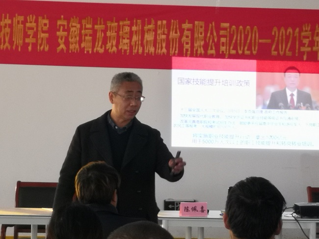 2020年12月4日,成教处在安徽瑞龙玻璃机械有限公司开展校企合作,组织企业职工新型学徒制培训开班仪式,并组织职工进行线上线下培训。今年以来,培训处先后于本市十多家企业开展校企合作,并举办了多起省市级高技能人才研修班,为我市区域经济的发展做出应有的贡献。