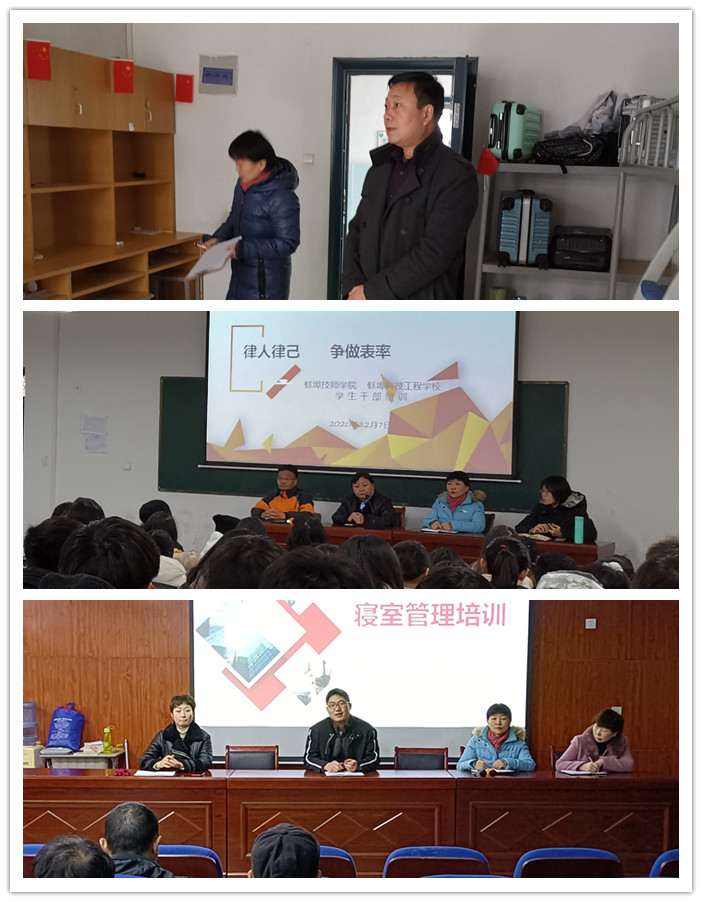 为保证工作的顺利进行,考核小组在陈华坤副院长的带领下,对相关人员进行了详细指导和培训。寝室管理人员培训一次,学生会干部集中培训三次,数次分组培训。同时虚心接受班主任的意见和建议,及时总结并完善考核细则,确保信息准确,统计无误,保证考核工作的公平公正,为每月考评工作收集了明细精确的量化分数。