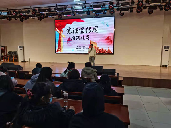 主题演讲比赛获得同学们的大力支持,大家踊跃报名参赛,选手们结合自身学习经历和生活体验,讲述了自己的宪法故事与感悟,阐述对宪法核心要义和精神实质的理解,声情并茂。饱含激情的演讲赢得观众阵阵掌声,向观众展现了当代学生尊崇宪法、爱国奉献的心声。