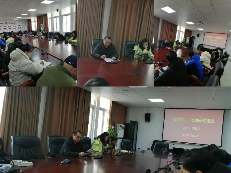 年轻是朝气、是活力、是创新。12月15日下午,安徽蚌埠技师学院四支部在行政楼三楼会议室,上了一节“年轻党员、干部的责任担当”为主题的党课,党课由学院党委副书记、院长宋晓宾同志主讲,支部书记张静同志主持,四支部全体党员同志参加。