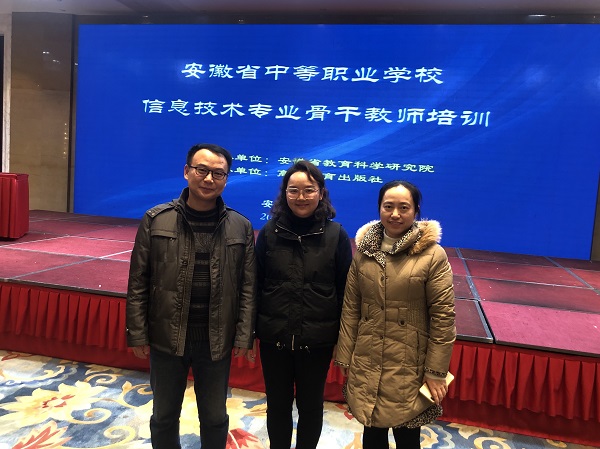 12月20-21日,由安徽省教育科学研究院主办,高等教育出版社承办的安徽省中等职业学校信息技术专业骨干教师培训在合肥拉开帷幕。电子信息工程系主任王玮、副主任王颖以及肖莹参加了培训。