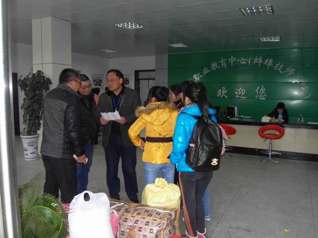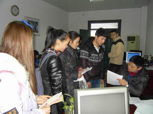 2014年2月26日,是我校2014级春季新生到校报到的第一天,今年的春招新生报到地点安排在学校的招生大厅,实行“一站式”服务。鲜艳醒目的欢迎标语:“热烈欢迎新同学,祝同学们在新的环境中取得更大的进步”“创社会认可的职业学校,办人民满意的职业教育”张贴在学校招生接待大厅门前两侧,报到的各个流程井然有序地安排在招生接待大厅里。上午七时,报到接待人员全部到位,各项接待工作均准备就绪。
