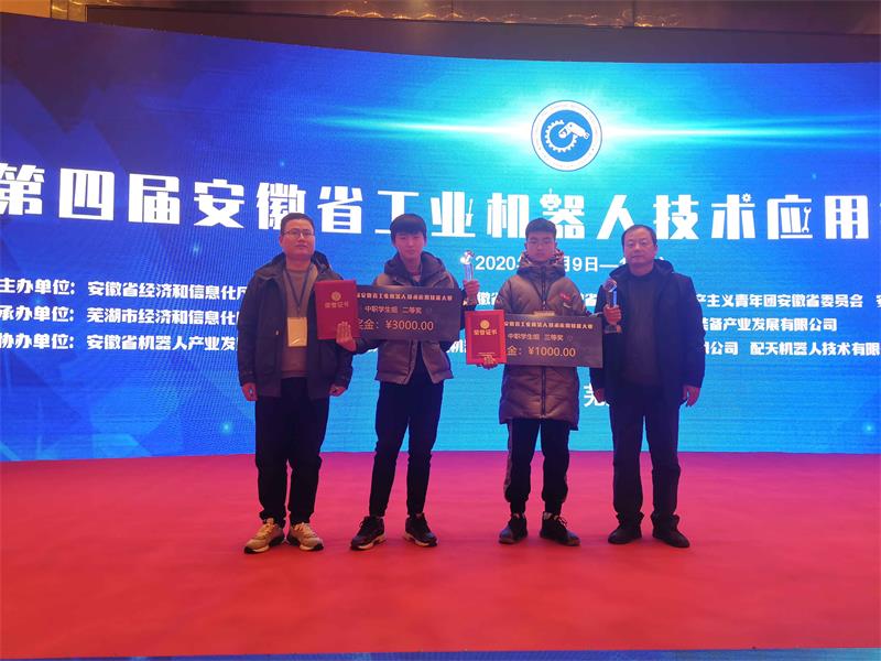 12月9至12月11日,由安徽省经济和信息化厅、安徽省人力资源和社会保障厅、安徽省教育厅、安徽省总工会、中国共产主义青年团安徽省委员会、安徽省妇女联合会联合主办的第四届安徽省工业机器人技术应用技能大赛在安徽省芜湖市皖江人力资源公共职业训练基地隆重举行。经过两天的激烈角逐,我院选手朱隆鑫、宫毓繁分别获得中职学生组二等奖和三等奖的好成绩。