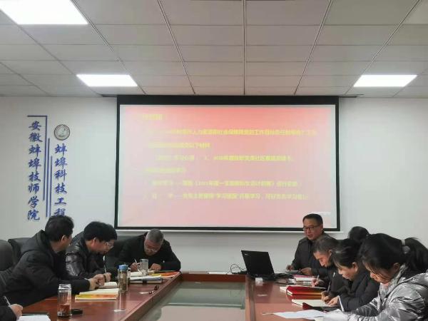 本次会议主要内容有三项。一、考核工作安排。王书记谈了关于《2020年蚌埠市人力资源和社会保障局党的工作目标责任制考核》工作,提醒各位党员近期需提交相关材料。二、年度政治理论学习。王书记谈到学习有集中学习和自学两种形式,集中学习根据《2021年度一支部组织生活计划表》进行安排,自学是党员主要使用“学习强国”开展学习,写好党员学习笔记。三、寒假注意事项。王书记强调各位党员要严格按照学院要求,寒假期间,减少不必要的出行,倡导非必要不出本市,各位党员要起带头作用。