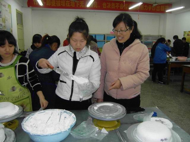 图为常伟伟同志在西点实训室巡查教学情况