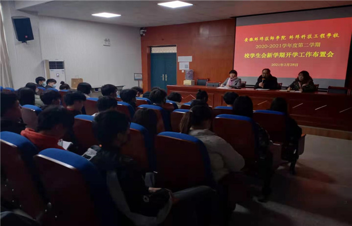 2月28日,学院团委组织召开学生会新学期开学工作布置会暨量化考核工作培训会,团委书记孙志伟、量化考核负责人房慧萍副主任、团委干事杨森及全体学生会干部参会。