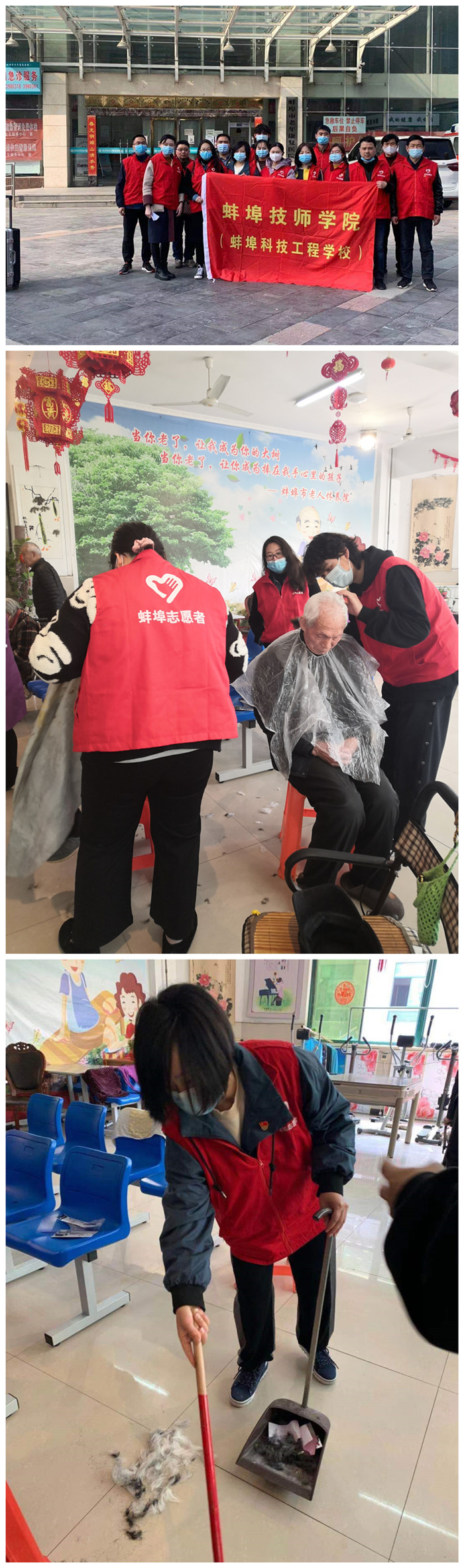 3月14日上午9时,我院四支部党员志愿者在书记张静同志的带领下,前往蚌埠市老人休养院,开展党员志愿者服务活动。
